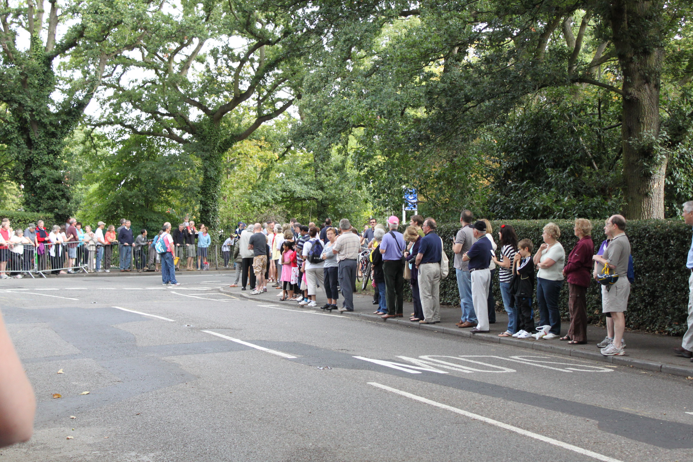 Buzzing with the expectation that ripples through the crowd at the right angle corner in Byfleet, I search for the ‘multiple picture’ setting on my new, birthday present camera. The guy next to me, sporting a similar model but different manufacturer fiddles for a bit but can’t help.