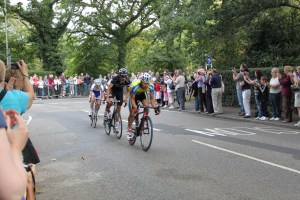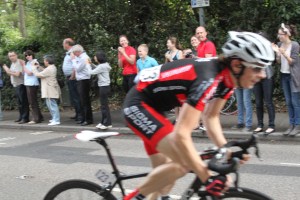 I scrutinize them then a flash of green catches my attention – in GB strip or not, there is no way Cav would be riding without his green helmet, shades and flashes on his bike ( he won the prestigious Tour de France Green Jersey 2011) – and there he is. Focussed, safely placed near the front of the pack, intent on doing what he does best – win!