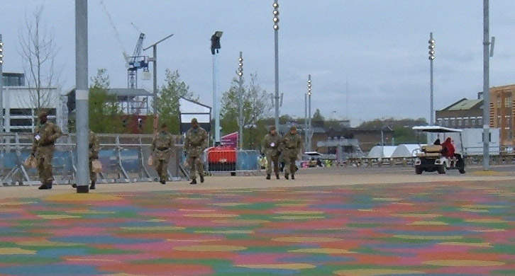 We arrived early enough that there were no queues to enter the park, which was employing full security checks just as it will during the Summer Games. The process was quick, efficient and friendly. It was no more onerous than those used at airports. The checkpoints were manned by soldiers. I asked whether the army would be performing this task in the summer. The young man was hesitant and prefaced his answer with the words, ‘I know this is a controversial issue…’. I assured him that for me it wasn’t and we parted with a smile.
