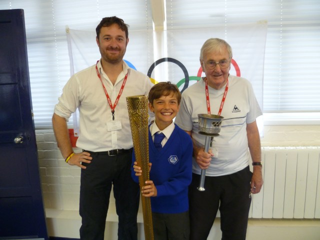 I was delighted to be invited to ‘report’ on this adventure, and also to a special school assembly at St Lawrence, Chobham school, to celebrate its success. There were two far more important guests who had really exciting things to share, and I was as entranced as the children to hear about the exploits of James Toney, our local torchbearer who had completed his 300 metre run on the same day as the school event, and also, John Green, a torchbearer from the 1948 Olympics who had run a much more tiring 2.5 mile leg.